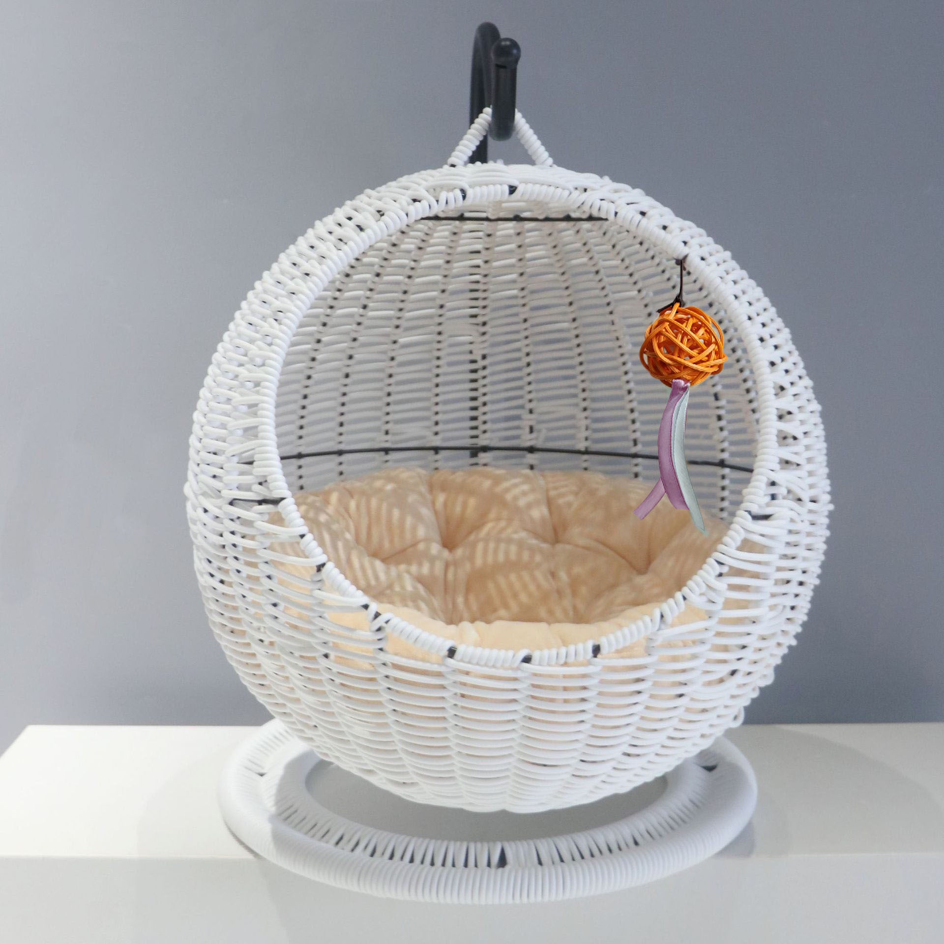 Trendy Semi-Enclosed Pet Hammock – Round Hanging Cat Bed, Wicker Basket Design, Summer Cat Hammock for Cages