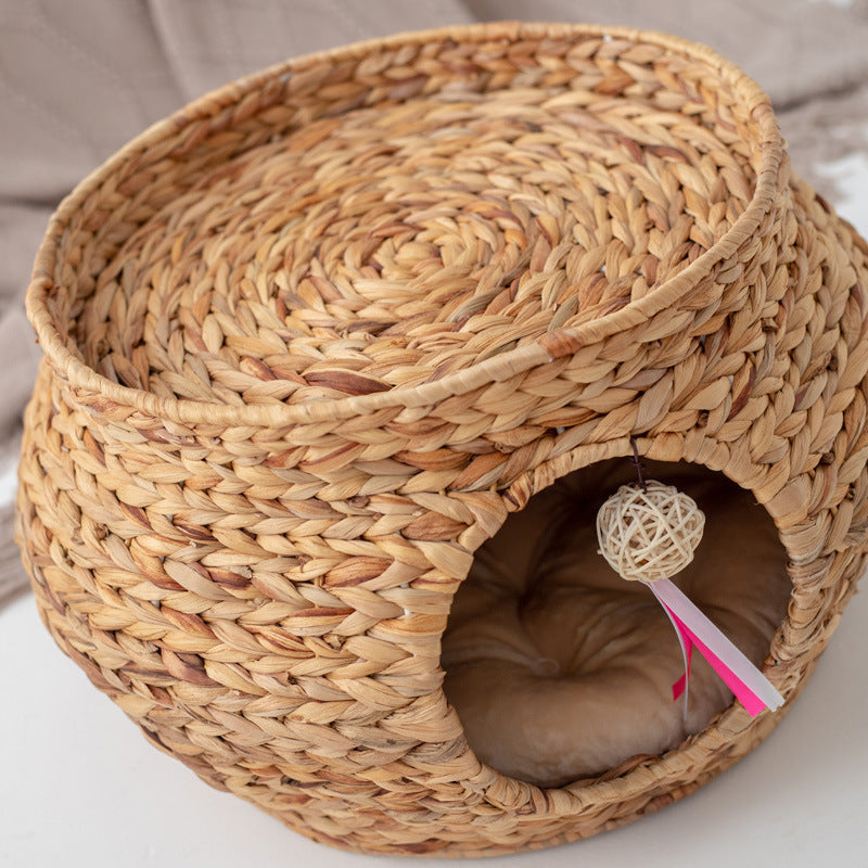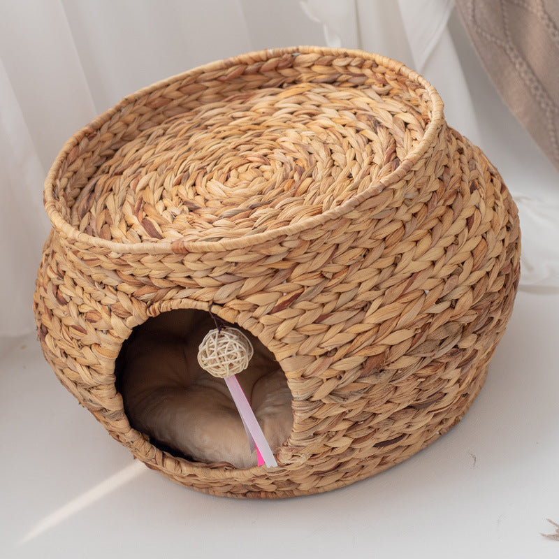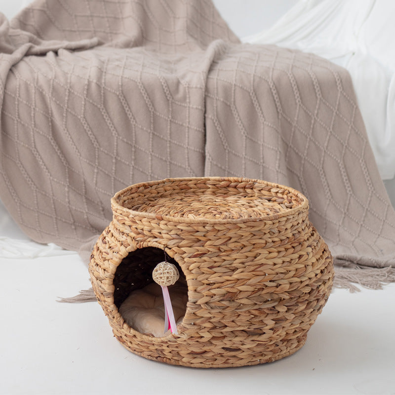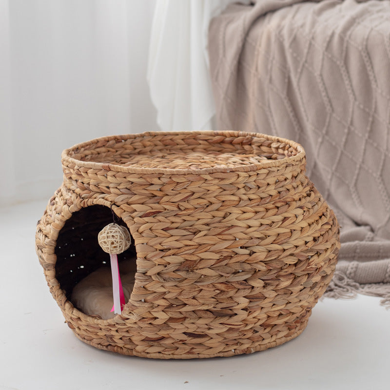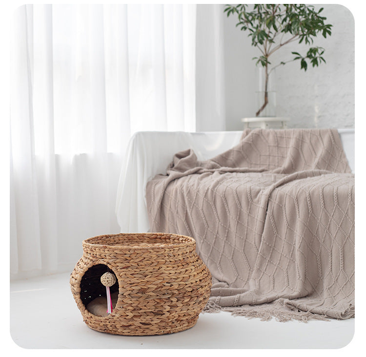1 × Hand-Woven Calabash Grass Cat House with Built-In Scratch Pad